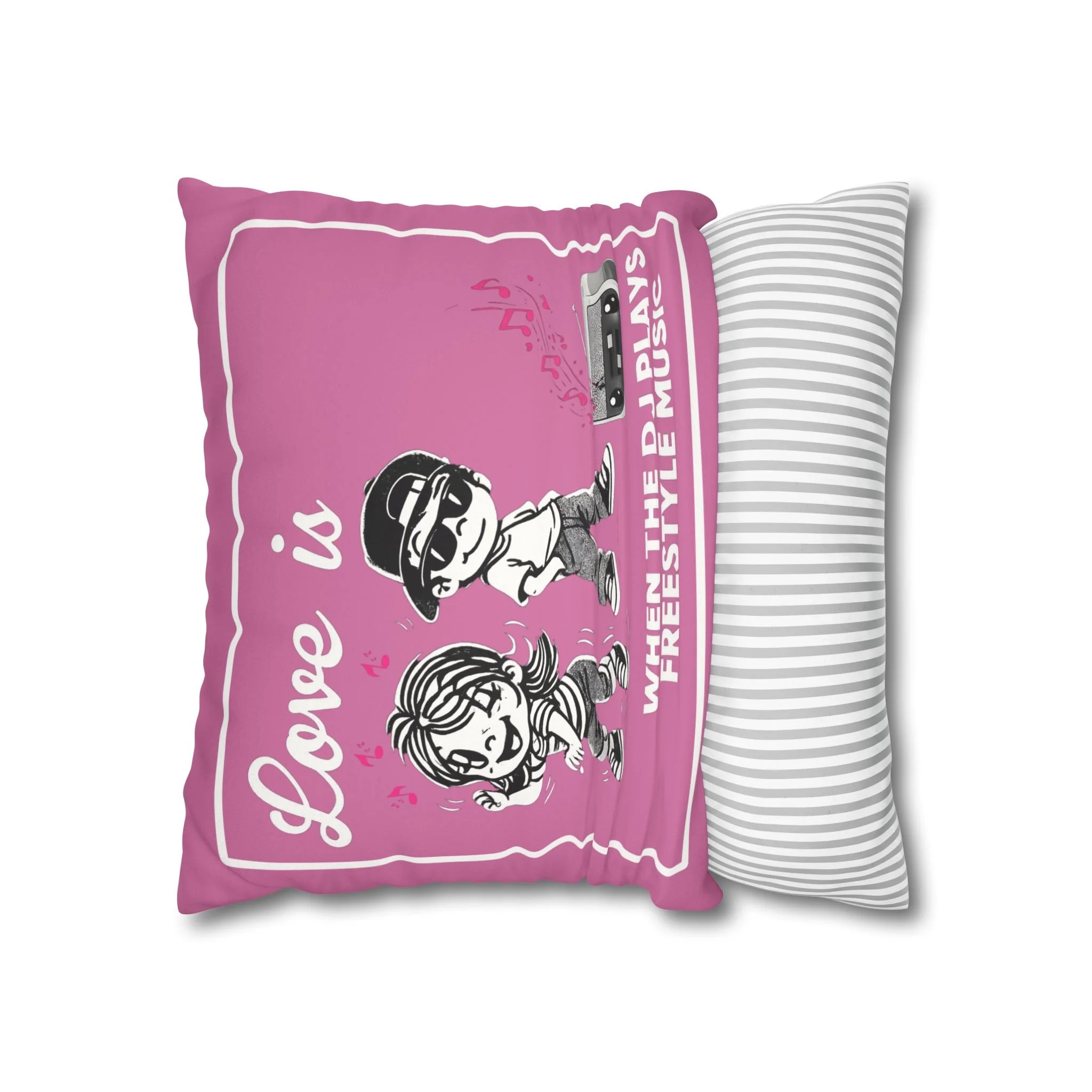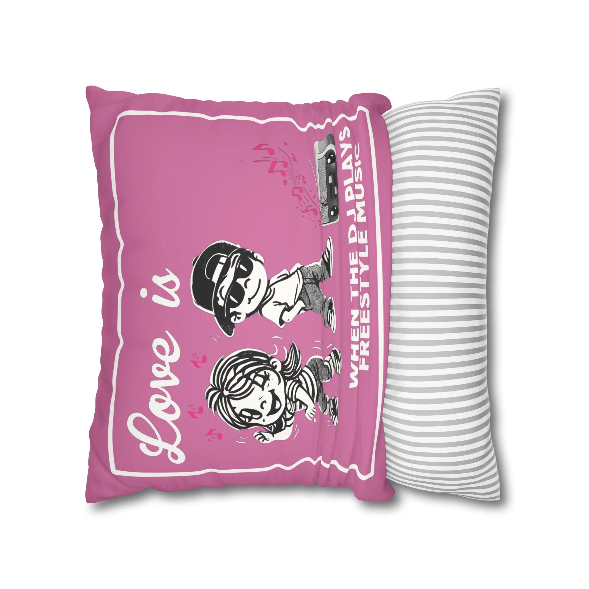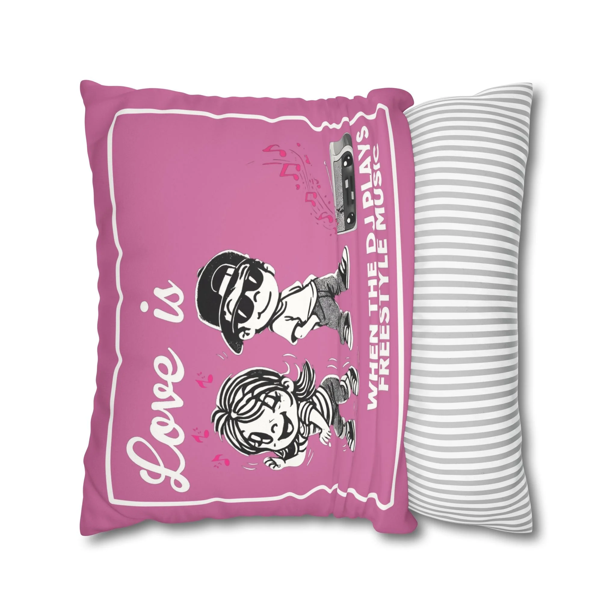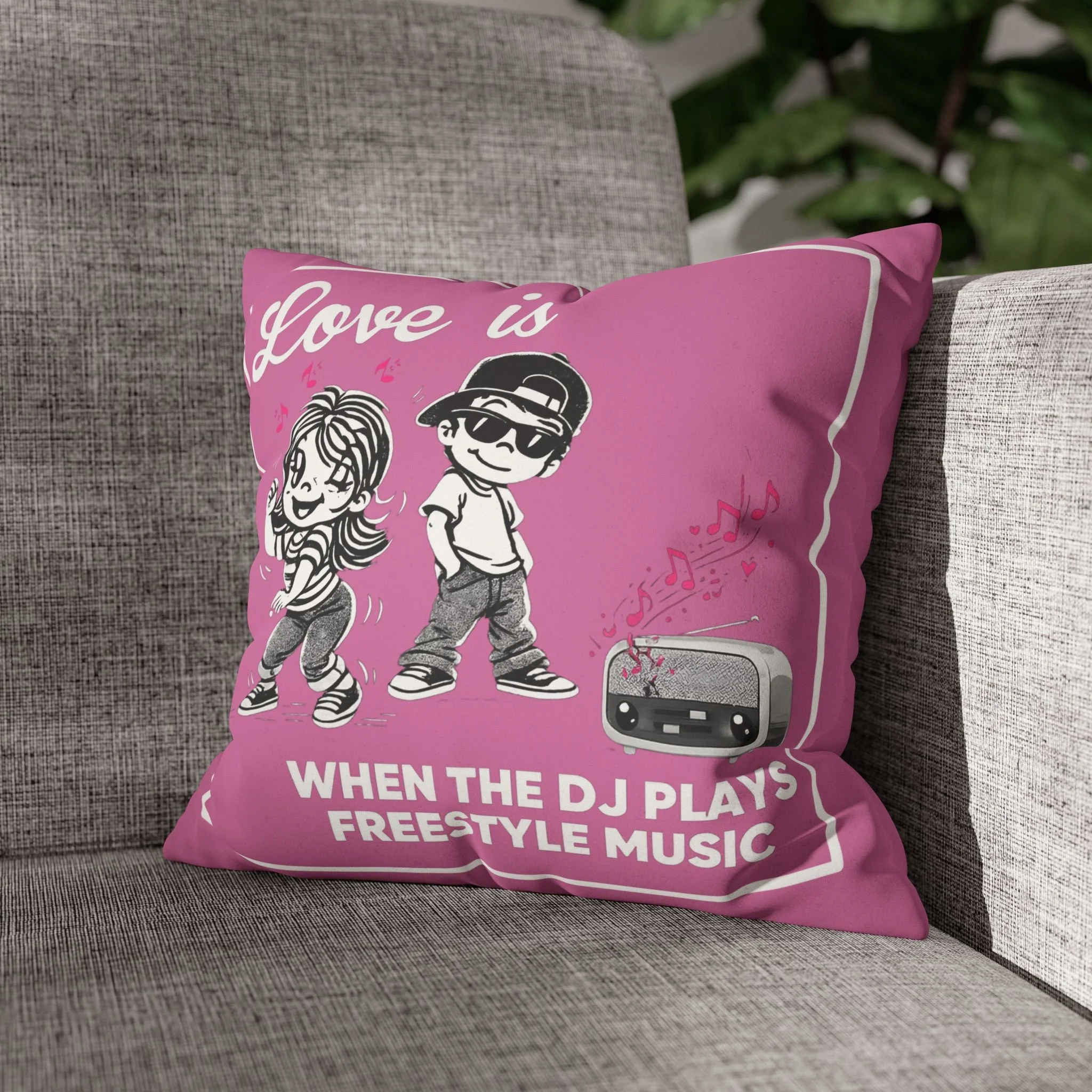 Celebrate the soundtrack of real love with this playful, retro-styled Freestyle Music pillow. Featuring a cute cartoon couple and a classic old-school radio, this design brings all the warm, nostalgic vibes of those unforgettable freestyle jams.