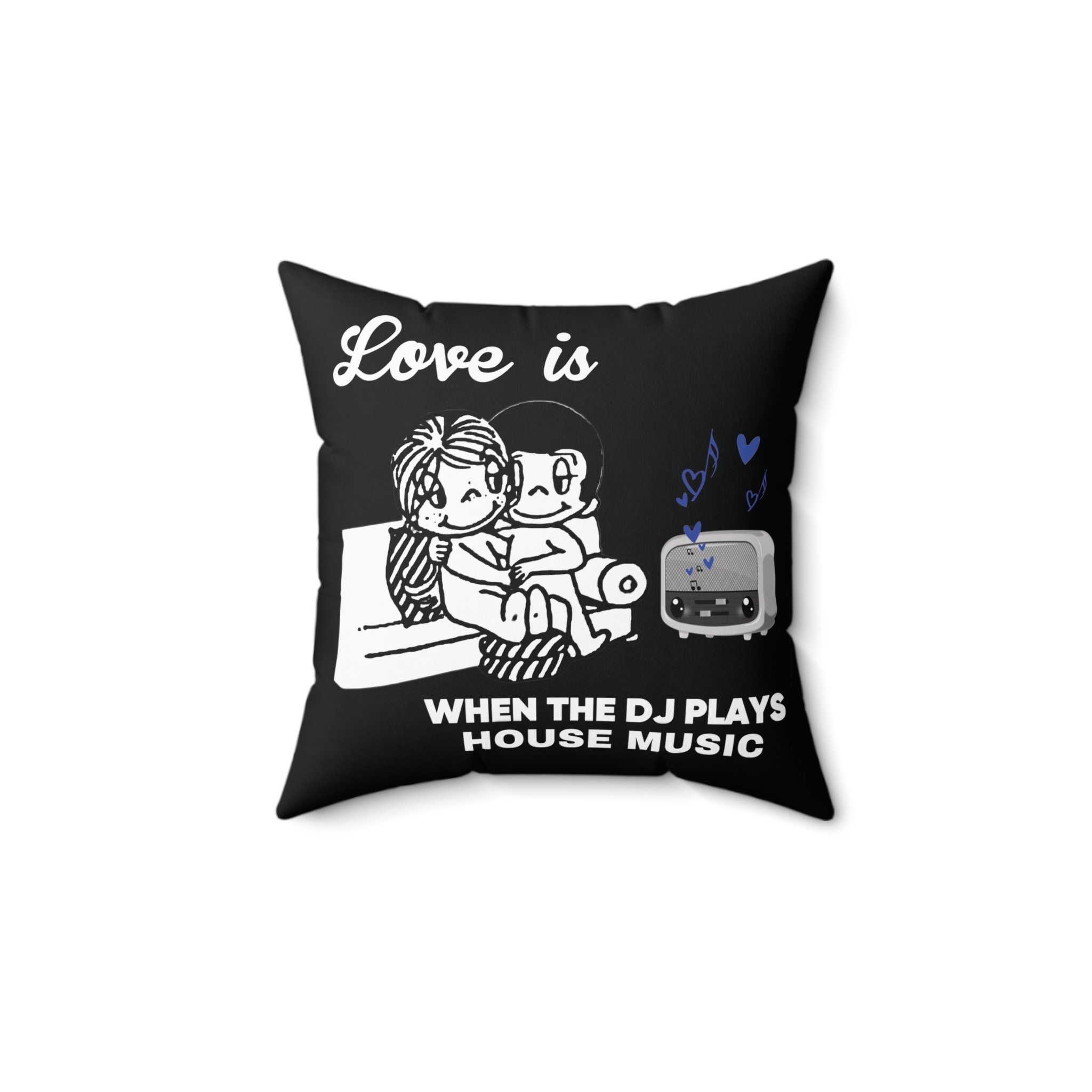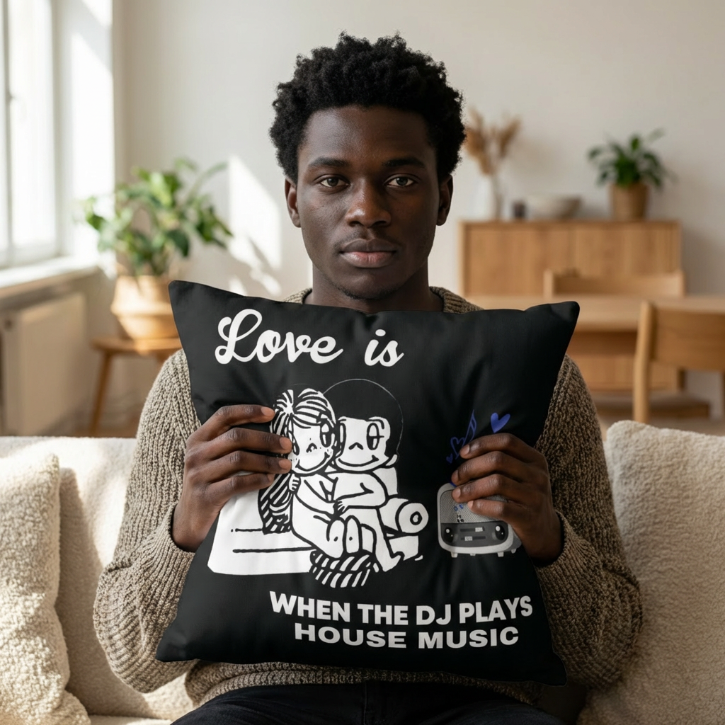 Bring the love of DJ and House music into your home with this square pillow. Perfect for House culture enthusiasts looking to add a cozy touch to their space. Ideal for music lovers, DJs, and anyone who enjoys a modern and trendy vibe. Great for decorating during music festivals, house parties, and casual get-togethers.